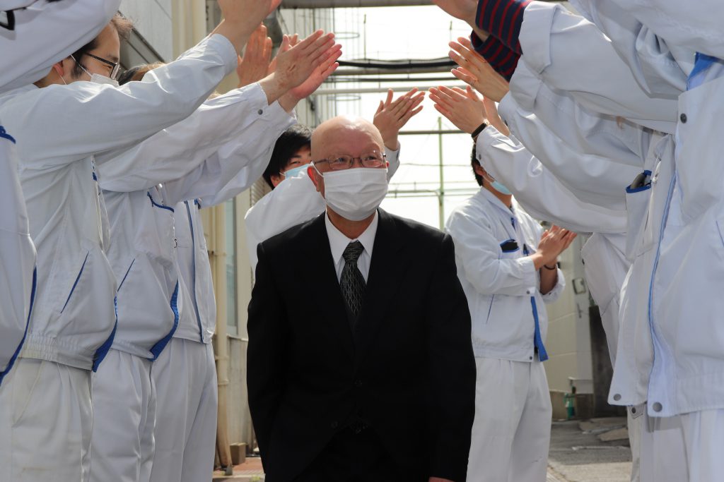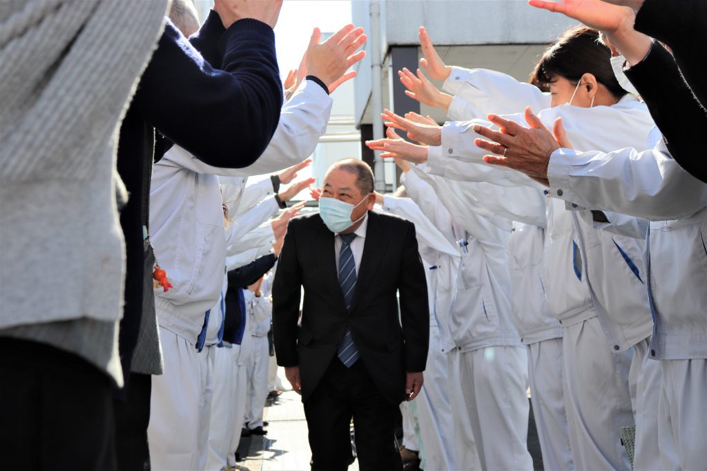 長年の功労を感謝し、大峰堂ファミリーの皆で拍手と花束でお見送り致しました。- 2022年02月21日