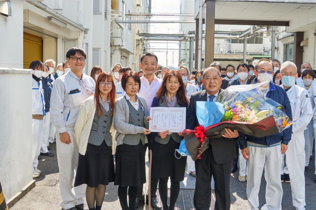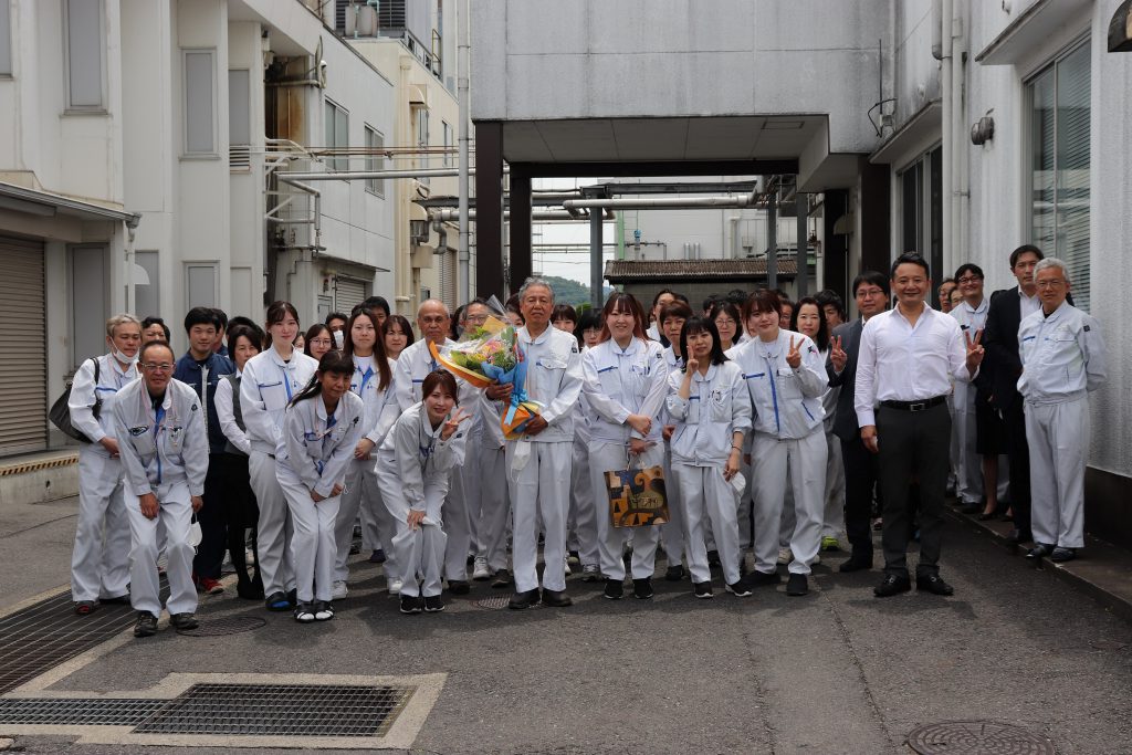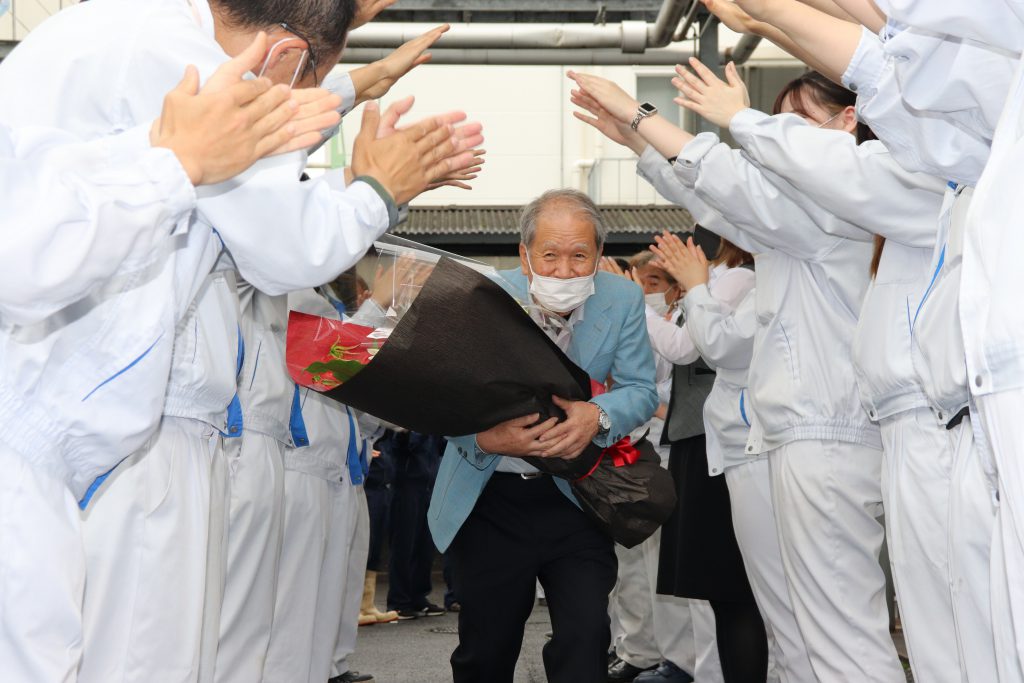 長年の功労を感謝し、大峰堂ファミリーの皆で拍手と花束でお見送り致しました。- 2022年05月12日