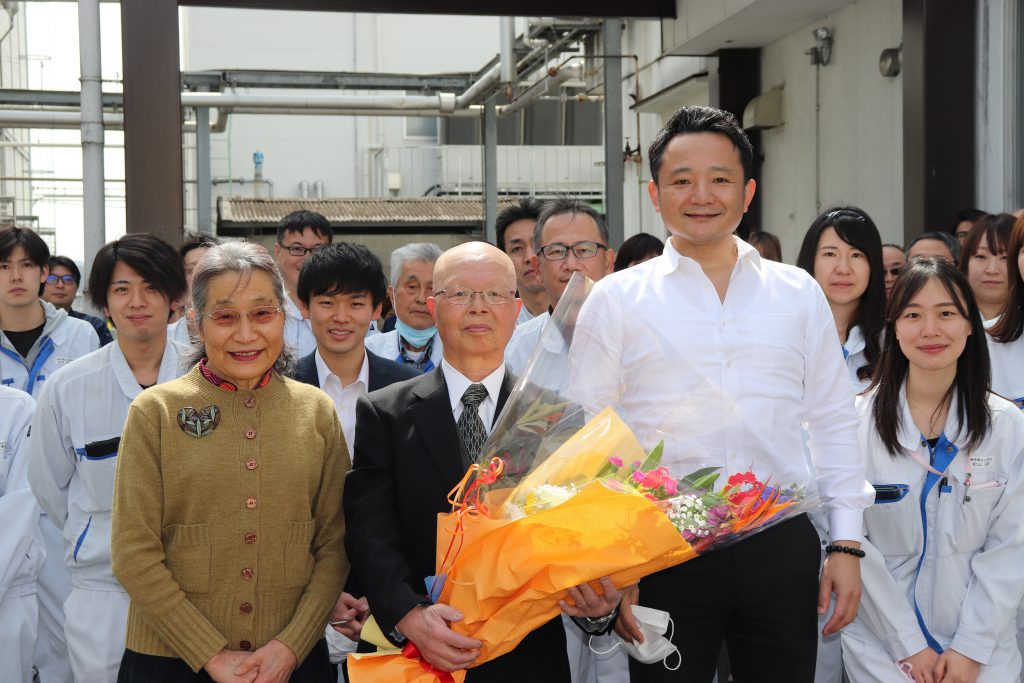 長年の功労を感謝し、大峰堂ファミリーの皆で拍手と花束でお見送り致しました。- 2022年04月01日