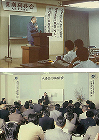 大峰堂漢方研究会を設立。漢方薬は個人の体質や病状に合わせて用いる必要があるため、当時は主に配置販売業者の方を対象に外部の講師をお招きし、年3~6回程度開催。- 1974