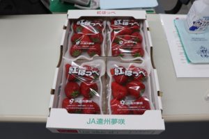 弊社社長のお知り合いの農園である「赤ずきんちゃんのおもしろ農園」様から苺の「紅ほっぺ」を購入し、従業員の皆に1パックずつお配りしました。 大粒で瑞々しく、従業員からは大好評でした。