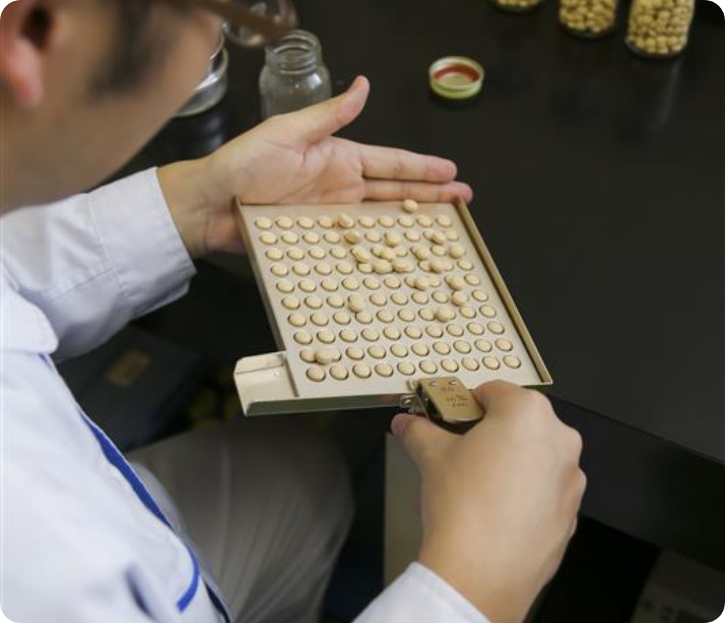 全ての製品に対して品質を保証できる「全数検査」の体制を実現し開発初期のシミュレーション段階で天然物由来の変動を完全にコントロールできる技術の確立